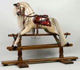Nowhere is the period charm and enduring appeal of the Victorian rocking horses shown to better effect than in the traditional rocking horse on bows which has captivated children and adults for more than two centuries. |